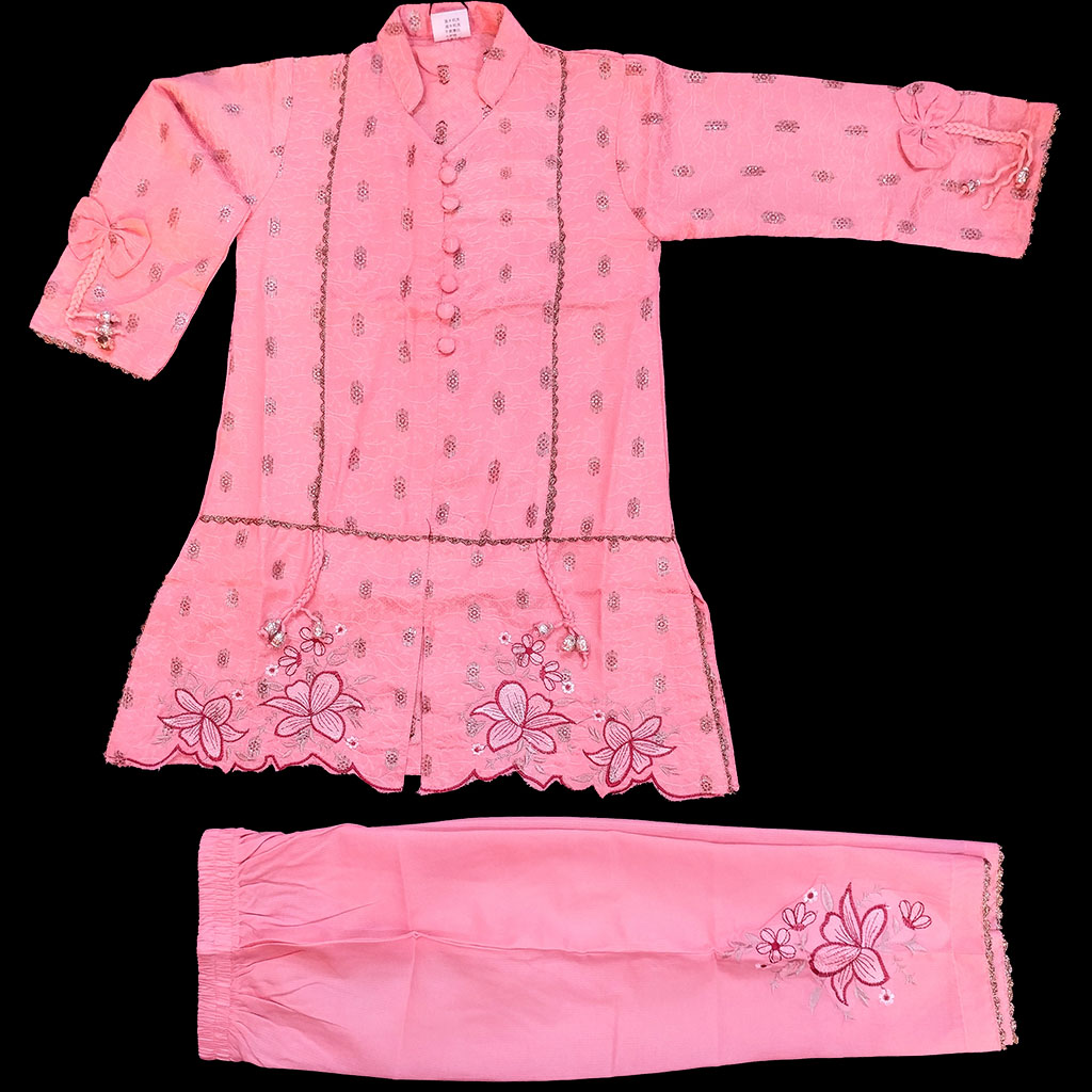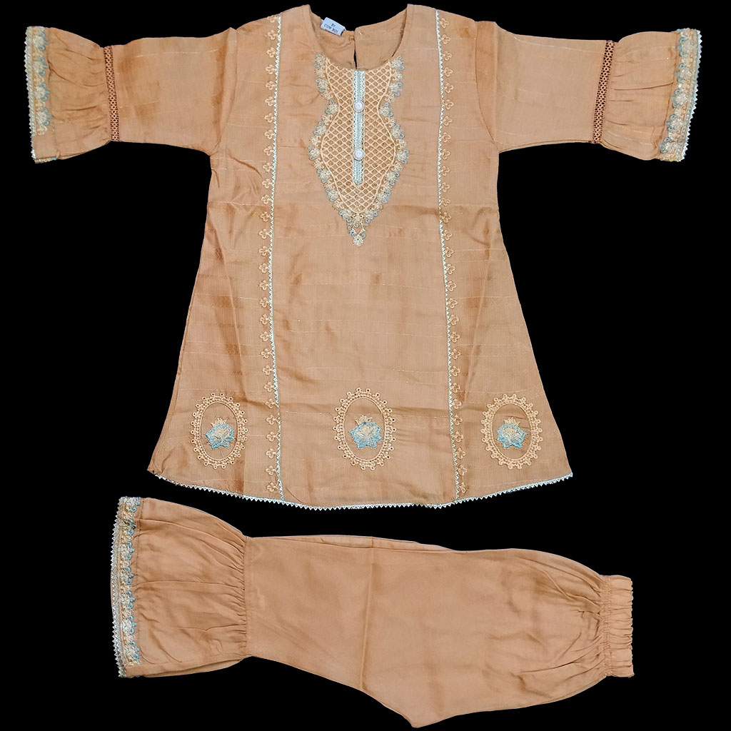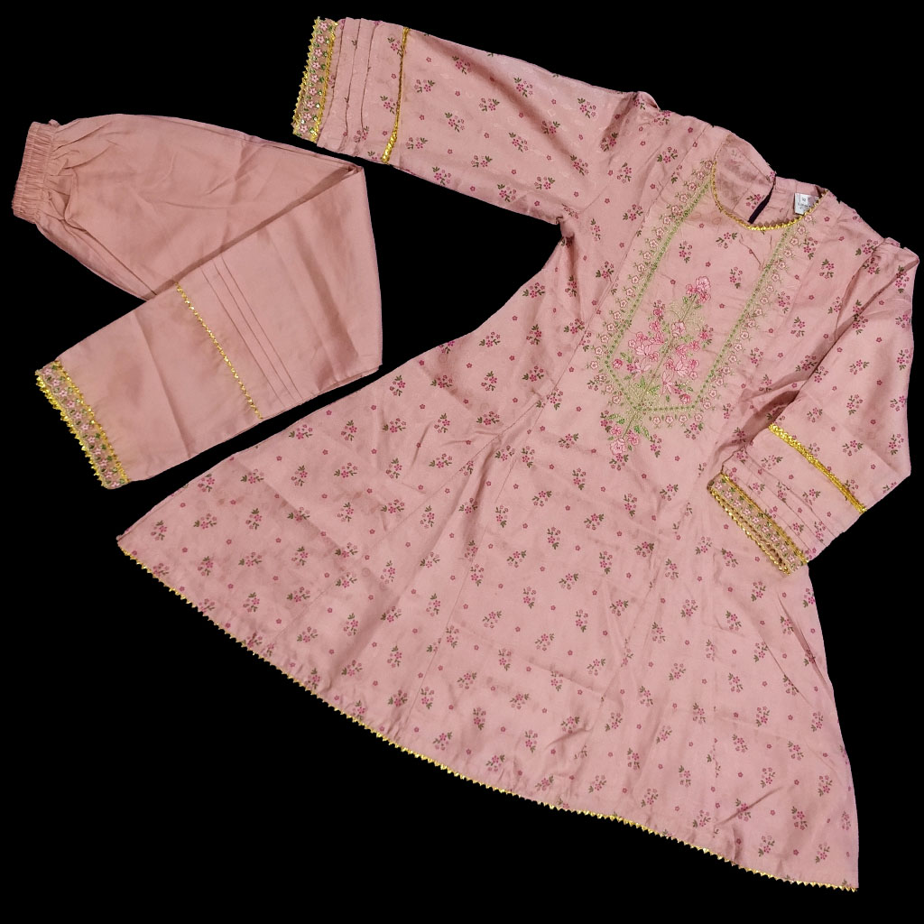 Peach Embroided self print frock with shararah